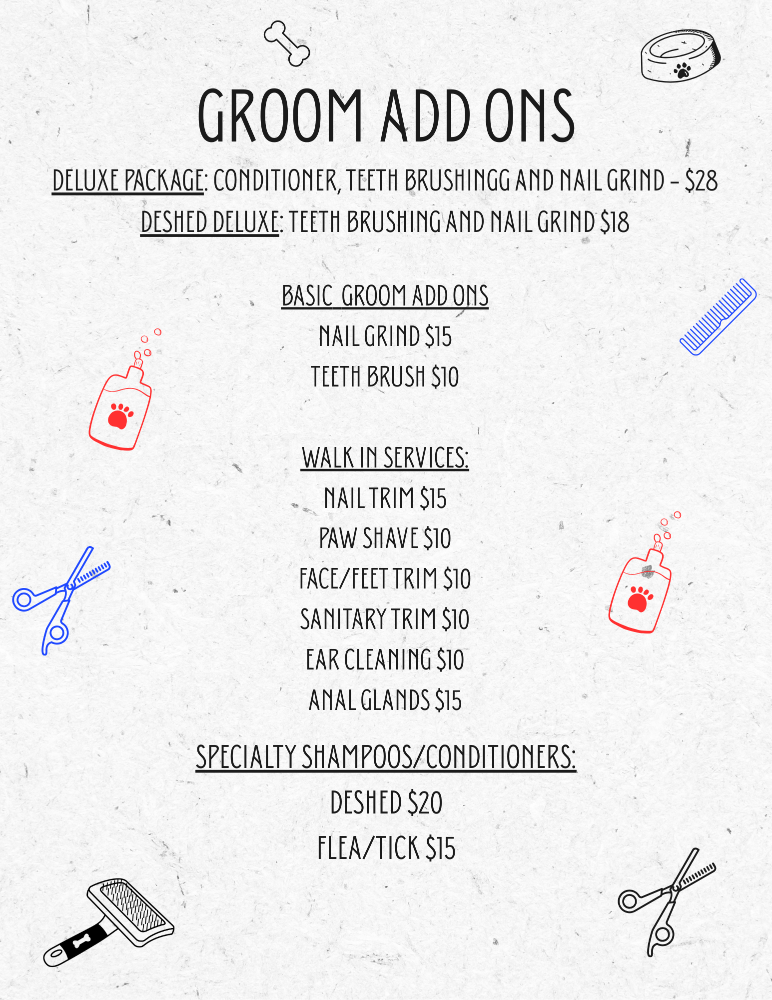 - Deluxe Package $28 - Conditioner, Teeth Brushing and Nail Grind